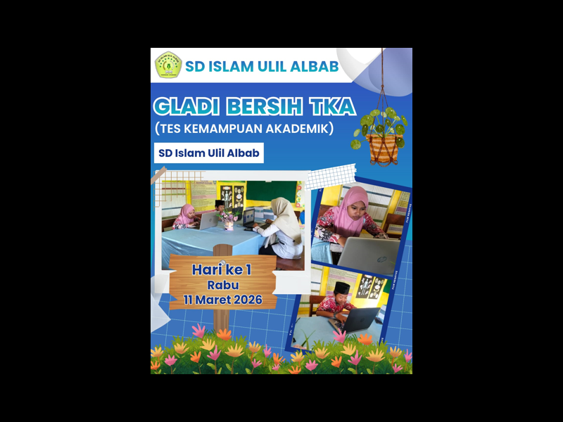 Pada tanggal 11 Maret 2026 hari rabu, SD Islam Ulil albab melaksanakan Gladi Bersih TKA 2026 dengan aman dan tertib tidak ada kendala apapun.
